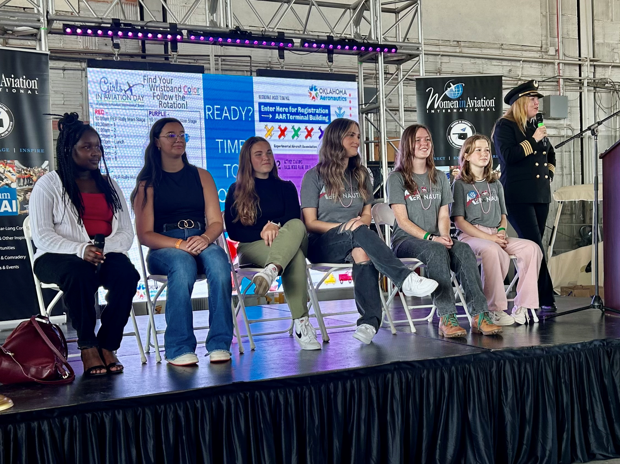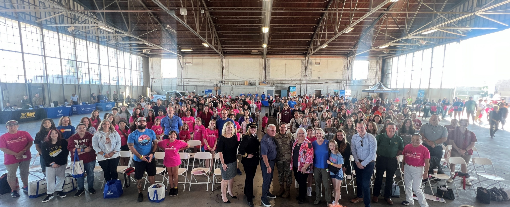 Historical Hangar #2 hosted over 600 girls for the Central Oklahoma Girls in Aviation Day which took place on September 23rd. The opening session “rally” for the girls included speakers such as the Commissioner of Labor Leslie Osborn, State Senator Paul Rosino, the Executive Director of the Oklahoma Department of Aerospace and Aeronautics Grayson Ardies, Director Jeff Mulder with Will Rogers World Airport, and Jennifer Wong with Boeing. Lt. Col. (ret) Deirdre Gurry served as the celebrity emcee.