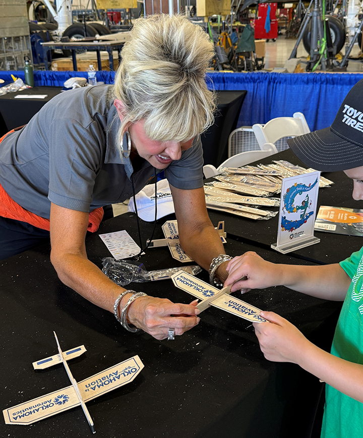 TINKER AIR FORCE BASE, OK – The Oklahoma Department of Aerospace and Aeronautics (ODAA) took the lead in providing an engaging Science, Technology, Engineering, and Mathematics (STEM) experience at the 2025 Tinker Air Force Base Warriors of Air and Space Air Show this past weekend. With the support of local pilots from the greater Oklahoma City flying community and state officials, ODAA staff created an inspiring environment for young attendees. In the STEM City hangar, participants had the exciting opportunity to build rockets and balsa wood airplanes, fostering a hands-on understanding of science and engineering for several hours each day.