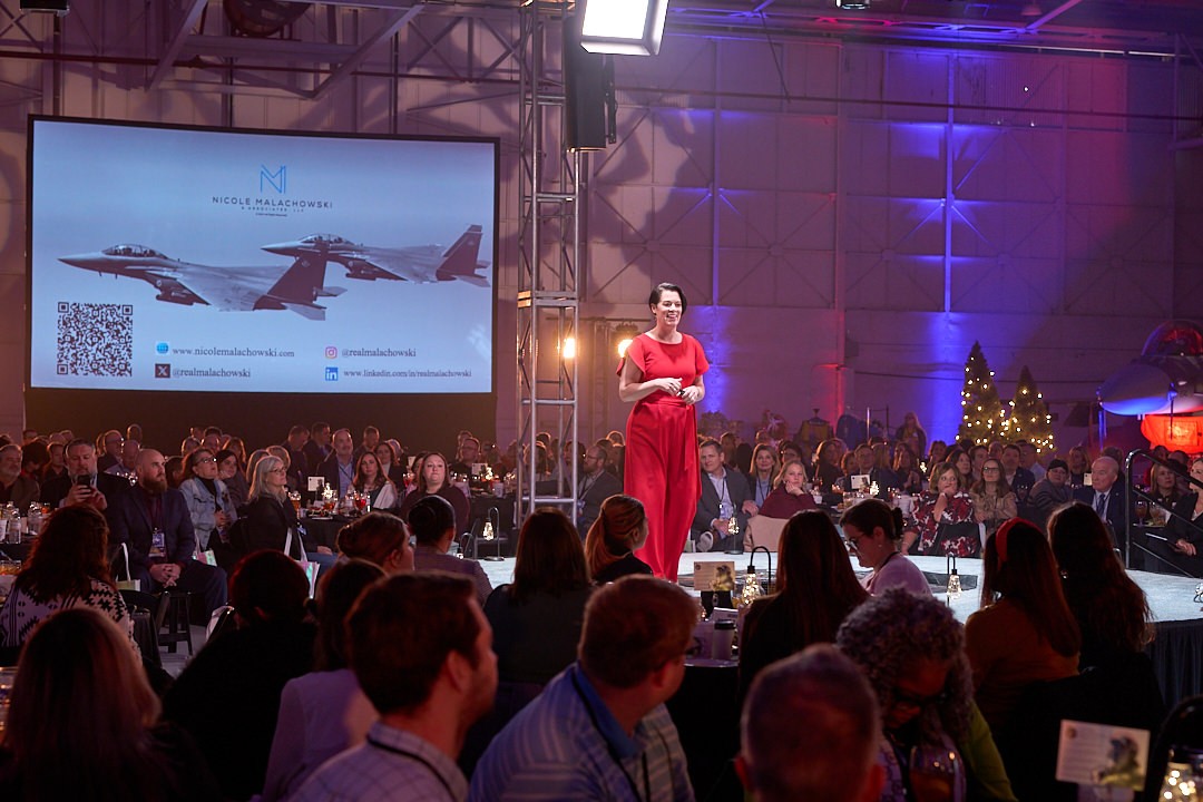 This year’s event featured a luncheon, a keynote address from Col. (Ret.) Nicole Malikowski, a combat veteran and the first woman pilot on the Thunderbirds Air Demonstration Squadron, and celebrity emcee, Kellie Hudson, who is the first female certificated air boss in the United States who also served 20 years as an Air Force air traffic controller.