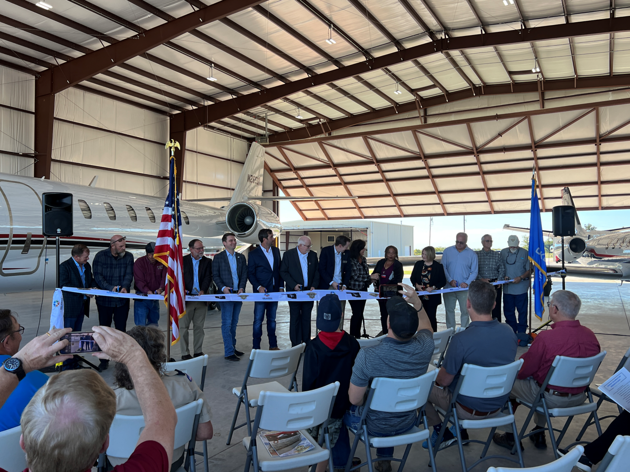 “This is a significant sector of our economy and many aviation and aerospace dreams start in small rural towns like this across the state. Though Oklahoma is known for our big aerospace industry players such as Tinker AFB, the FAA Monroney Center, American Airlines, and Boeing, it is the grassroots movement of aviation that started our industry back in the 20s and 30s and it is that same movement that continues to thrive right here, at airports and in new hangars like the one we are dedicating today that will lead this industry into the future.” said Ardies.