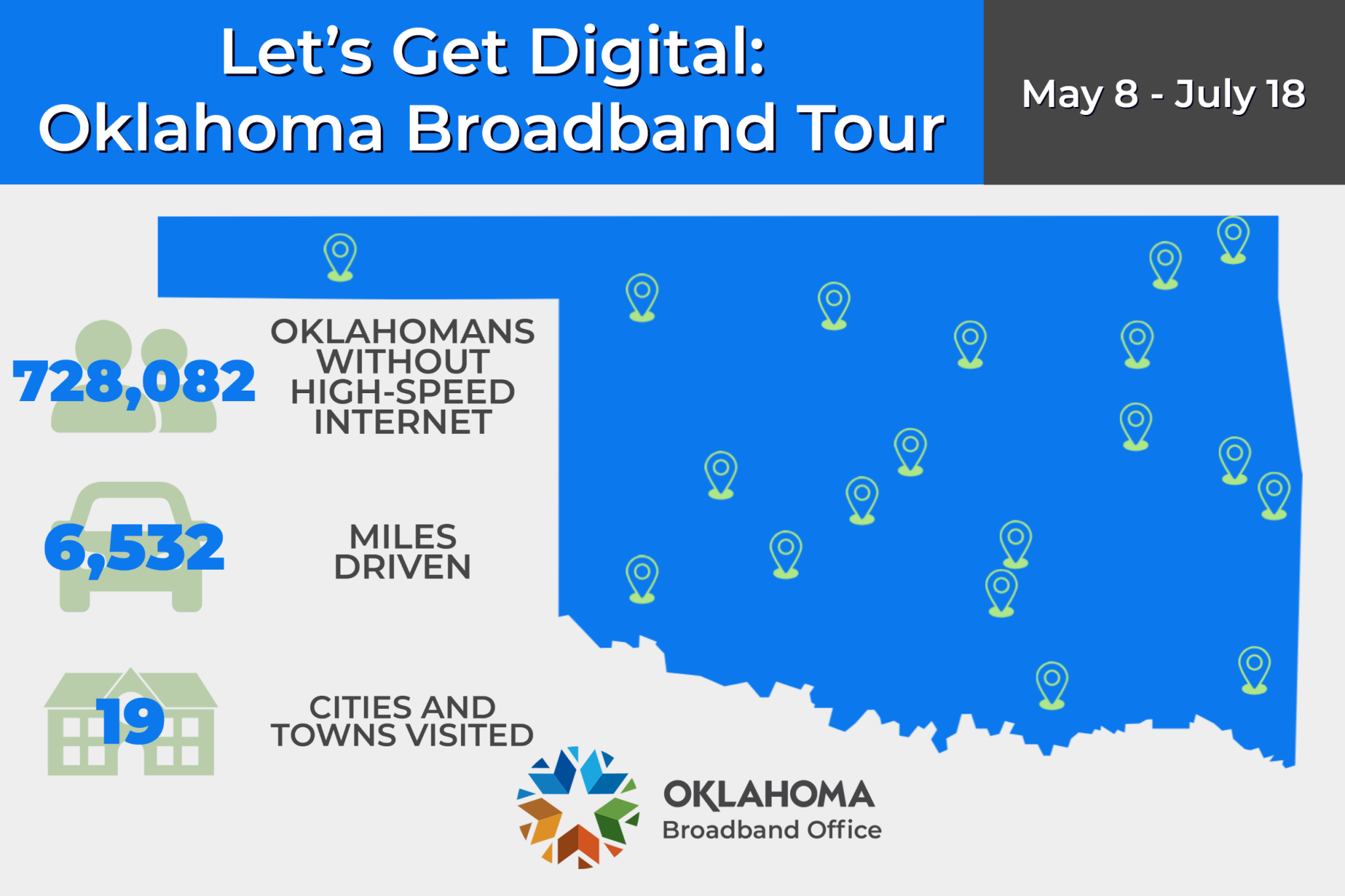 OKLAHOMA CITY – The Oklahoma Broadband Office (OBO) has wrapped up its statewide “Let’s Get Digital: Oklahoma Broadband Tour” and is now equipped with valuable on-the-ground information to help build an effective plan to expand access to high-speed internet throughout the state.