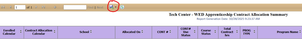 - Report Title: Tech Center – WED Apprenticeship Contact Allocation Summary 666