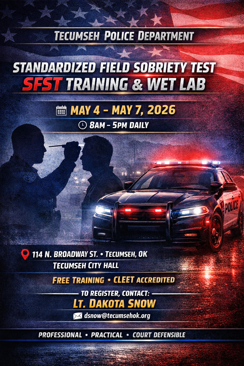 SFST class with a wet lab at the end to become certified to conduct SFST's.