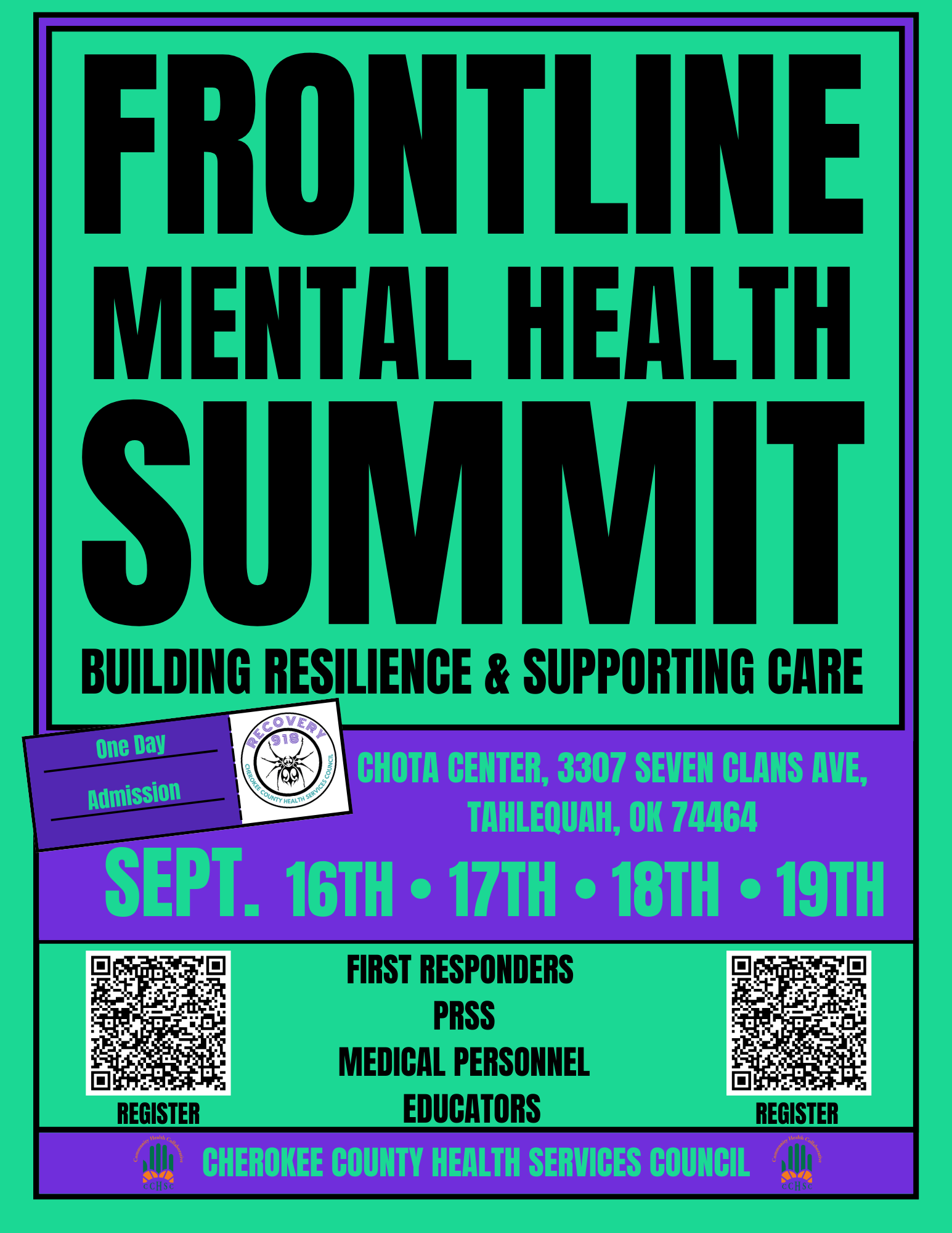 We are pleased to announce a new and groundbreaking mental health summit tailored specifically for frontline workers. From September 16th-19th, this four-day event will bring together professionals from four critical sectors: First Responders & Law Enforcement, Peer Recovery Support Specialists, Medical Professionals, and Educators. This event is open statewide to all Oklahoma professionals.