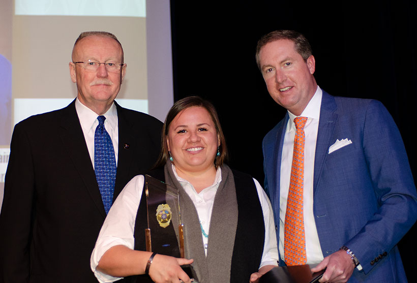 ![]() Director Joe Allbaugh, Probation and Parole Officer of the Year - Brandi Chamberlain and Chair Board Member Frank X. Henke, IV |