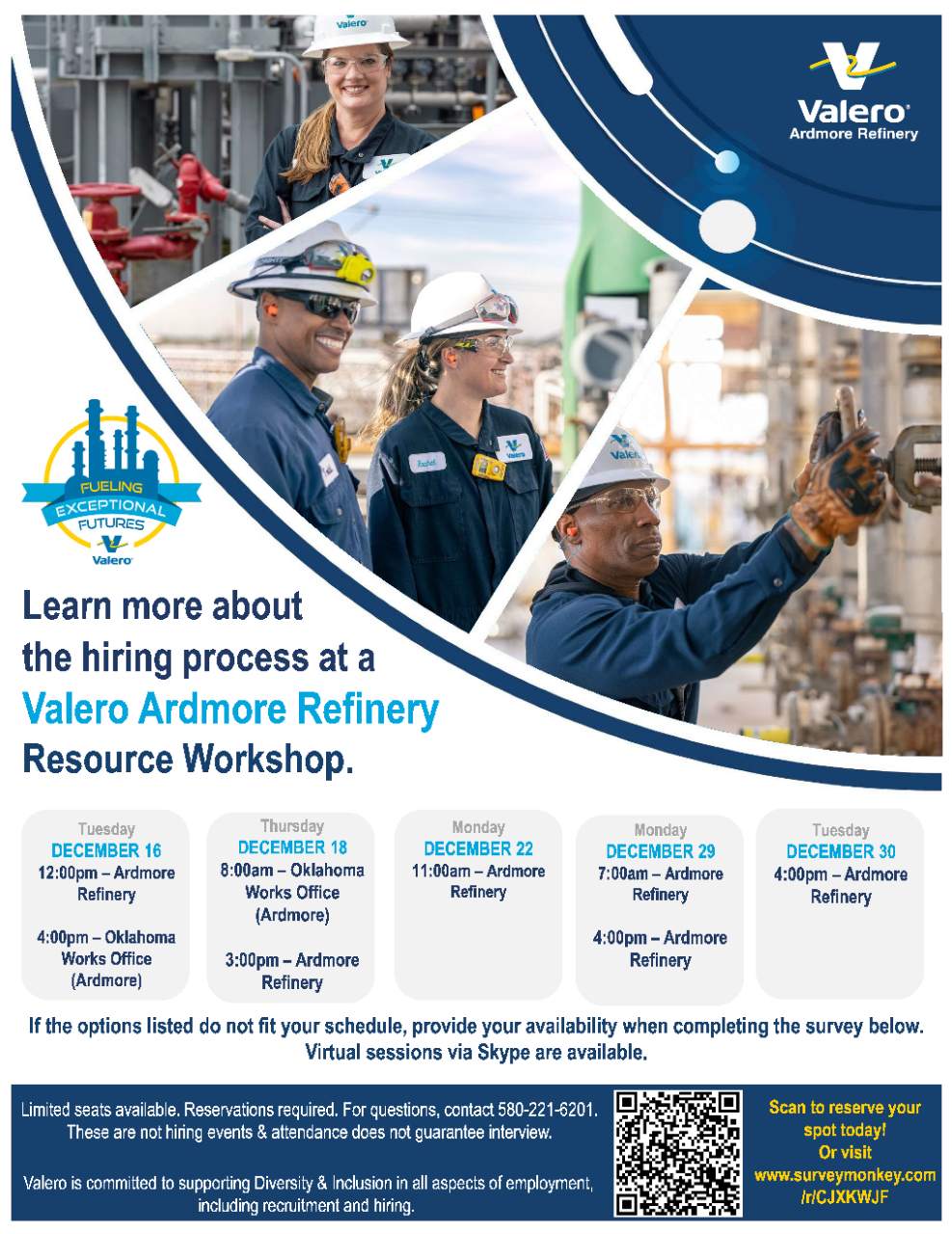 The Valero Refinery is offering multiple Resource Workshops this month to help job seekers learn about the hiring process, résumés, and behavioral interviews.