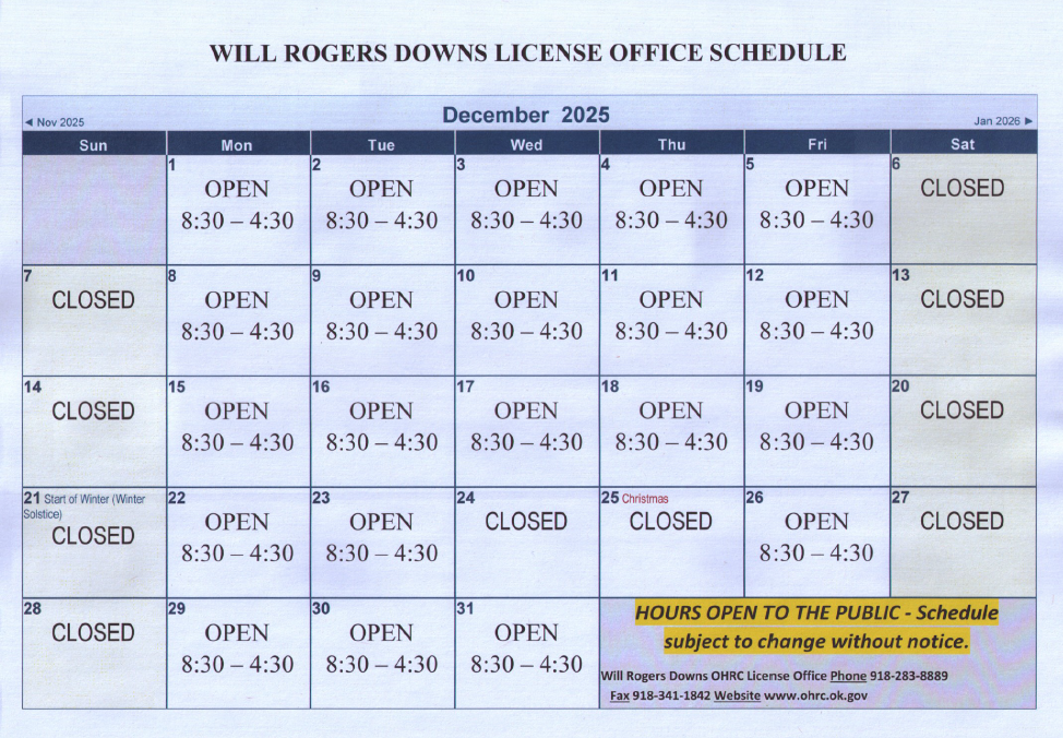 OHRC Licensing Office 918-743-7223 EXT 3596