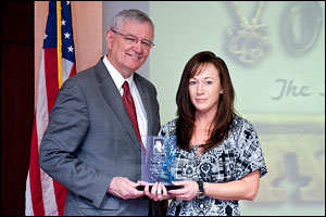 OKDHS Director Howard Hendrick presents Sandi Guess with the “Freida Mosley Award for Outstanding Service.