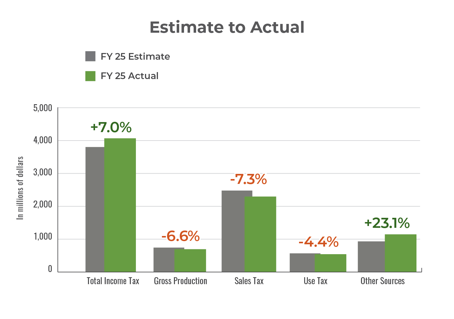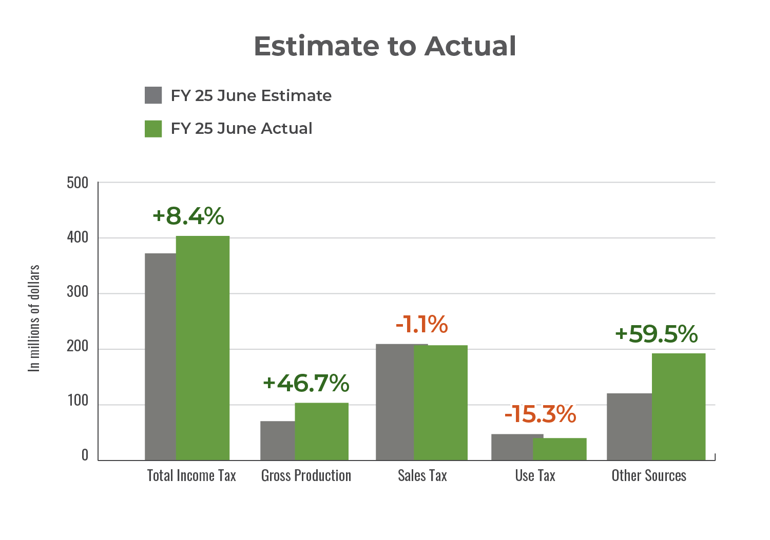 "Total general revenue collections from fiscal year 2025 exceeded estimates for the fifth consecutive year," said State Chief Operating Officer and OMES Director Rick Rose. "June delivered a strong finish, with several revenue categories surpassing projections. This solid close provides valuable momentum as we move into FY 2026.”