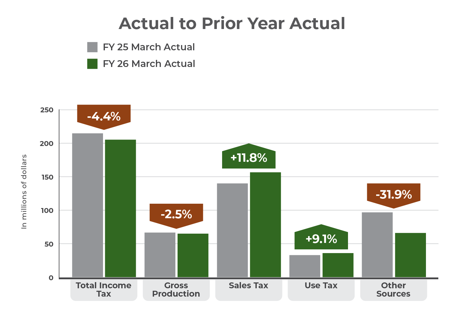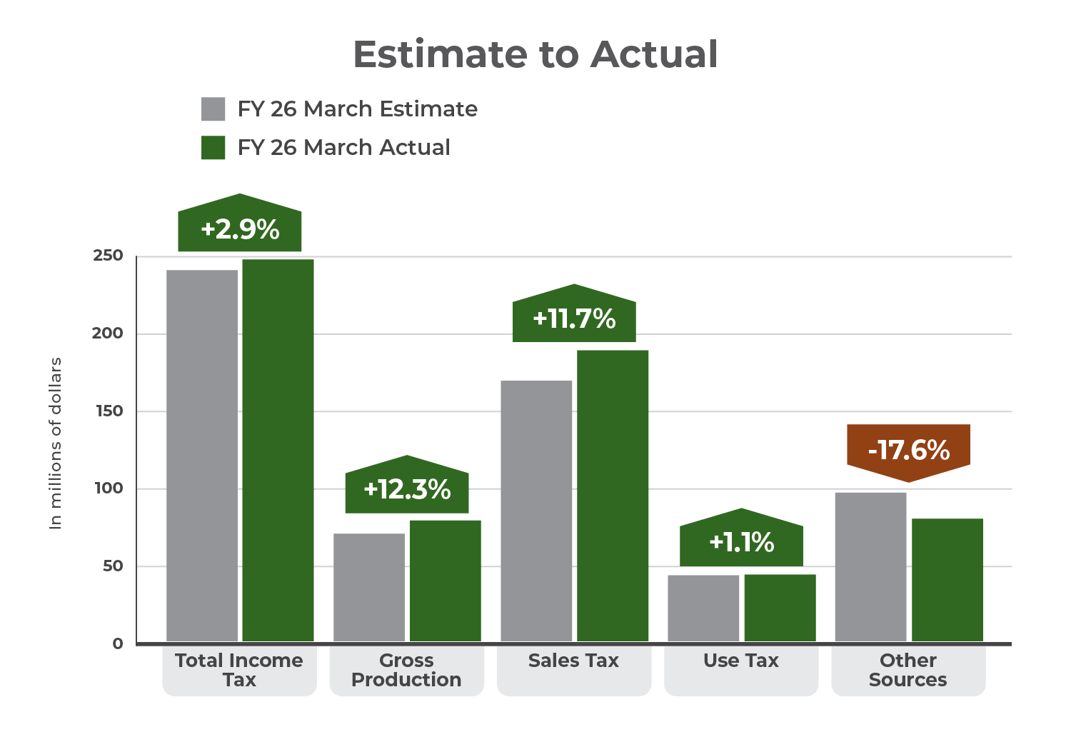 "March collections exceeded estimates in every major category," said OMES Director Mark Wood. "Notably, sales tax outperformed last March by 11.8%. As we enter the final quarter of the fiscal year, we anticipate continued stability in both GRF collections and Oklahoma's economy."