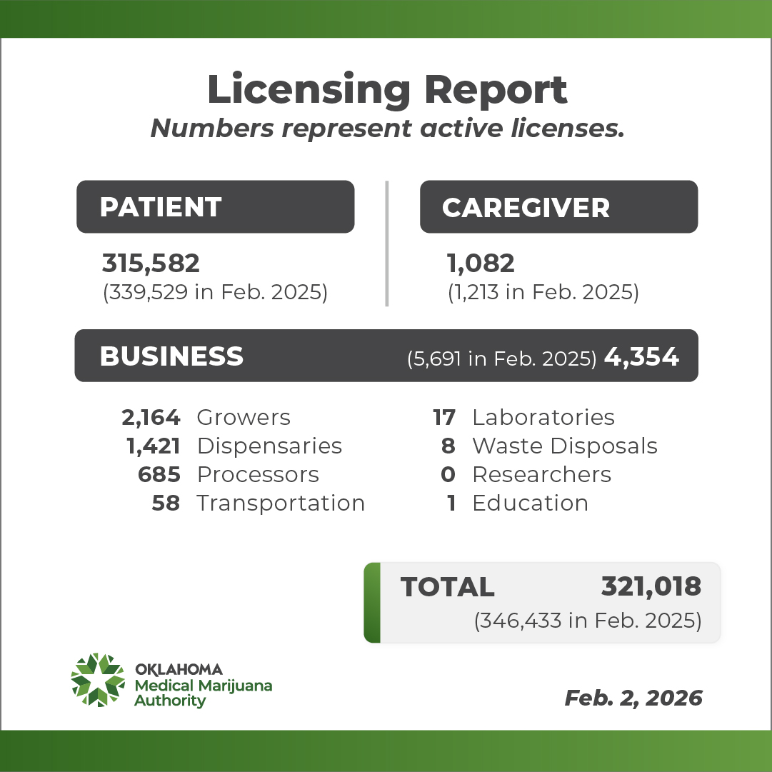 The OMMA Dashboard is maintained and updated by NCS Analytics. They have created an analytical tool that actively monitors and analyzes data from multiple systems including Metrc, the state’s seed-to-sale tracking system. View this data-driven tool here.