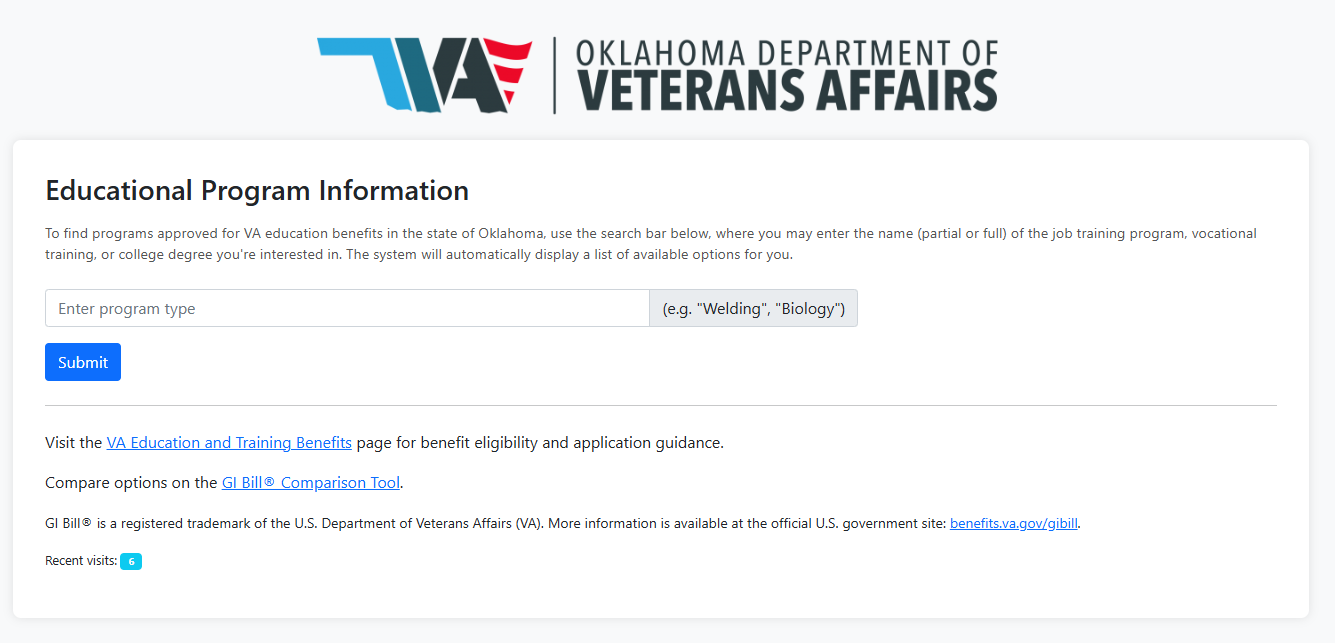 As the State Approving Agency (SAA) for Oklahoma, the Oklahoma Department of Veterans Affairs (ODVA) acts in partnership with the U.S. Department of Veterans Affairs (VA) to provide oversight over all institutions offering education or training in the State of Oklahoma who participate in, or wish to participate in, GI Bill® educational benefits.