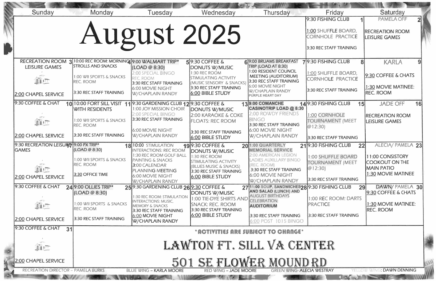 Our community is very active with our veterans and many activities are sponsored by various groups on a daily basis. Please come see our facility anytime during our business hours.