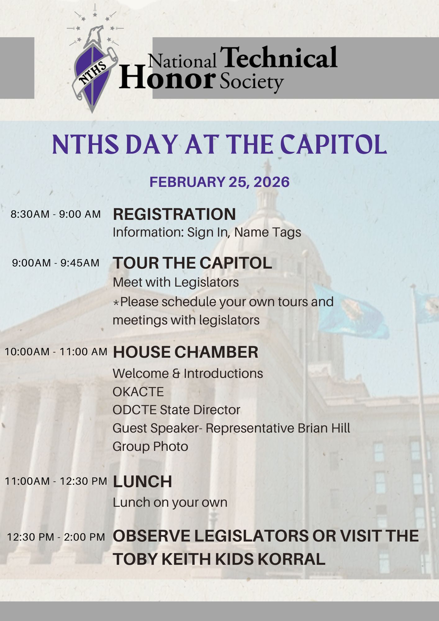 - On February 26th be sure to come to the House Chamber during the assigned time for the OK NTHS Day at the Capitol presentation.