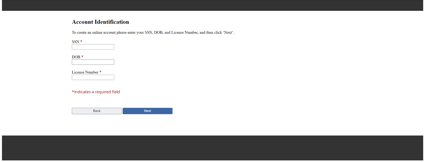 2.  To create an account you must enter this information. Enter the zeros in your license number as it is on your license card.