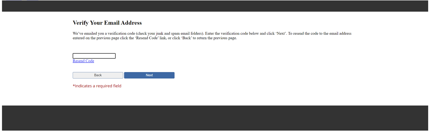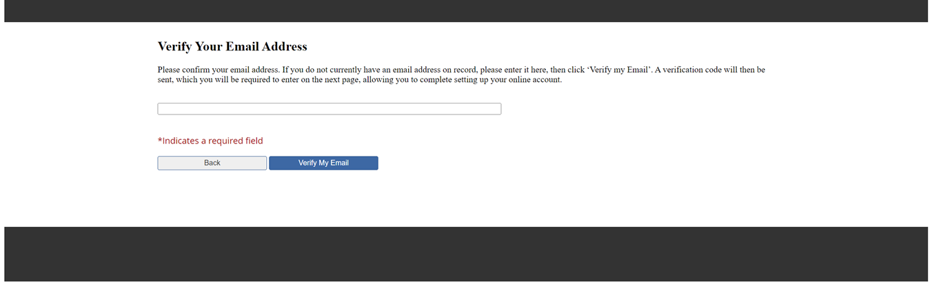 3.  Enter your email address and click "Verify my Email" button. Please wait 10 minutes to recieve your verification email before you try again. If you have any issues please contact the CIB at 405-521-6550 for further assistance.