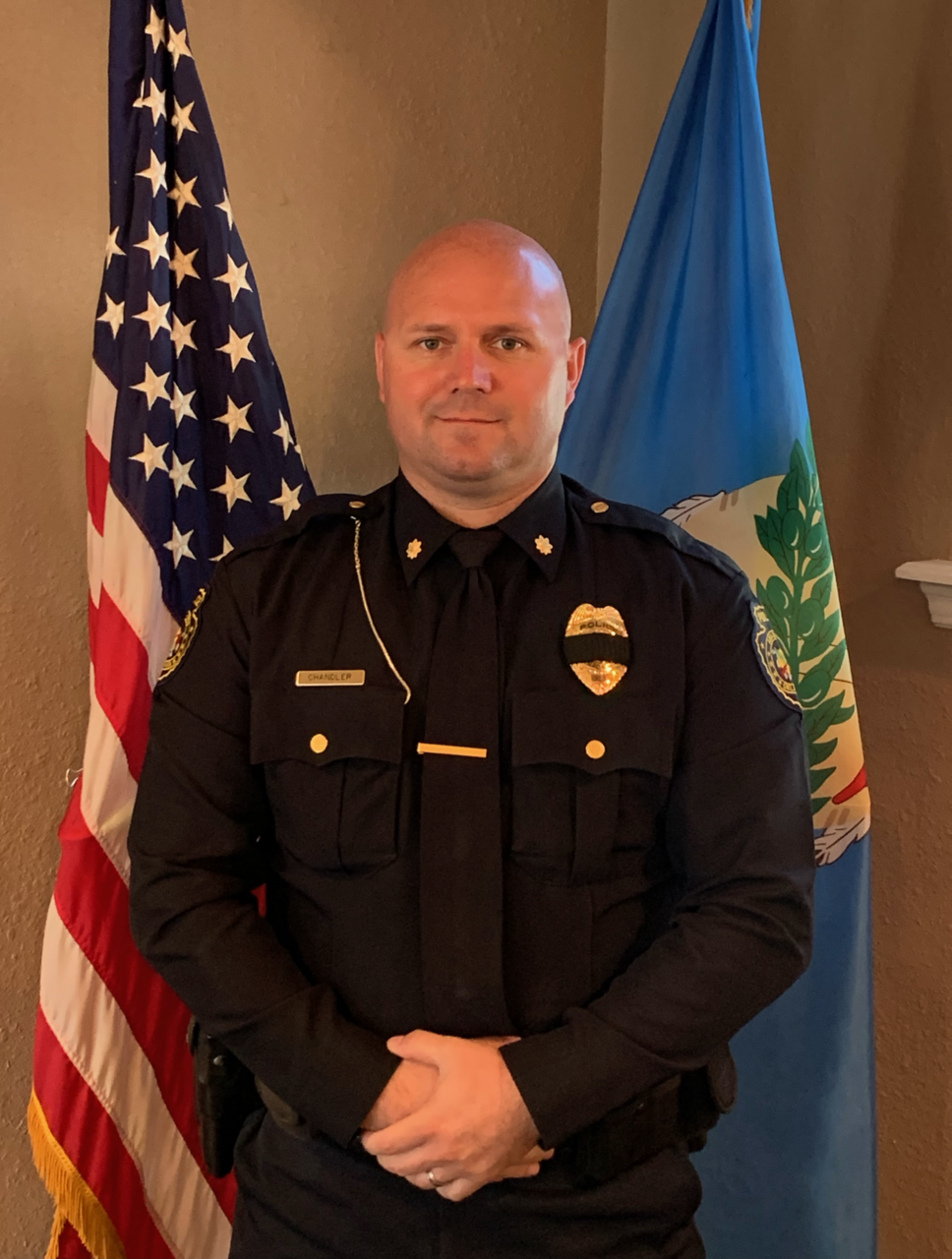 - In July of 2011, Chandler was hired as a patrolman with the Anadarko Police Department. During his tenure at the department, he served as a Patrolman, Corporal, Canine Handler, Patrol Sergeant, Lieutenant, Training Coordinator, and Assistant Chief.