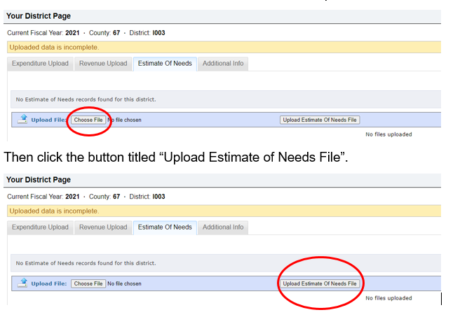 On the Estimate of Needs tab you will see a box titled "Choose File". Click on this button and chose the location of the file to be uploaded. Please name the file Bonded for easy reference.