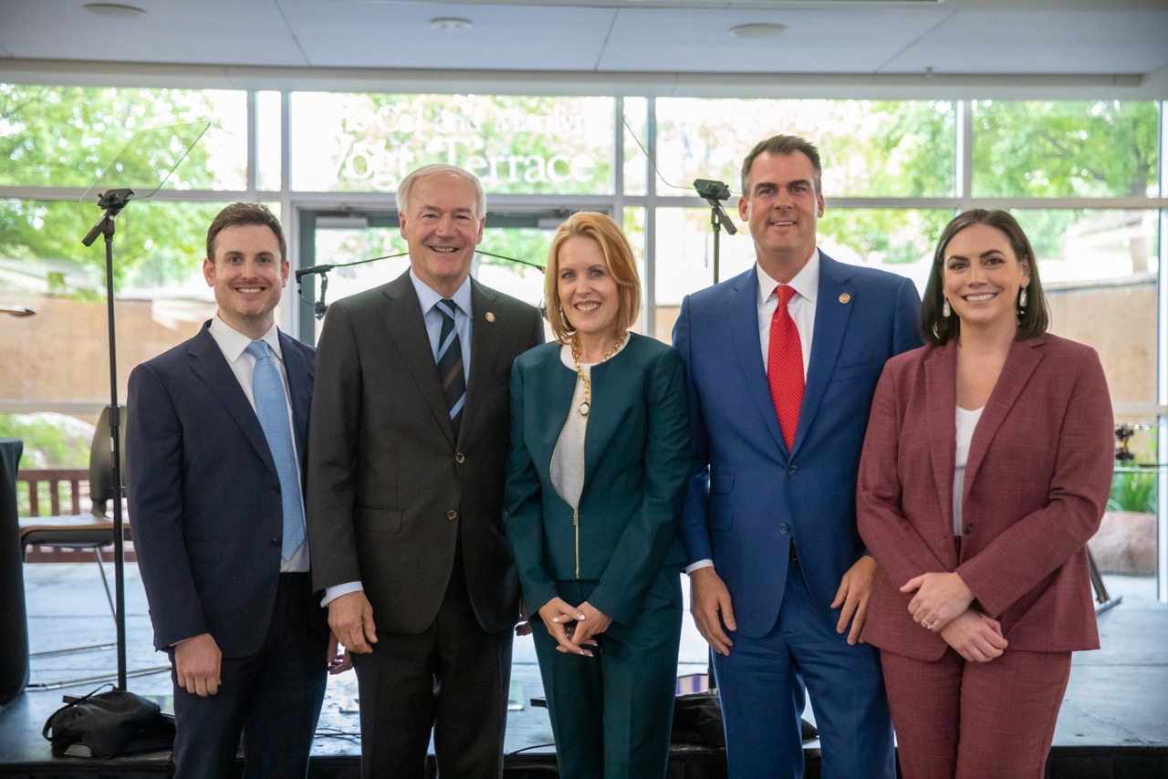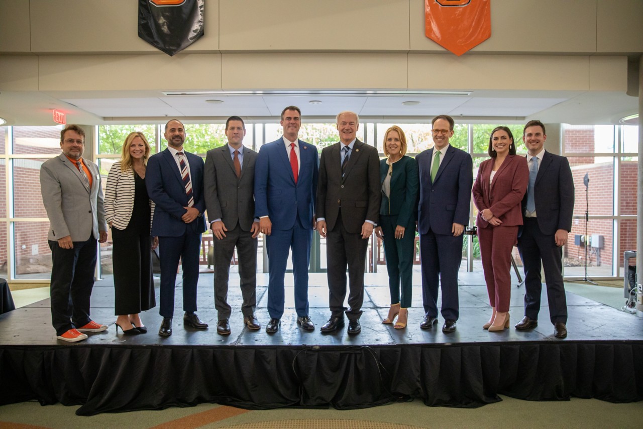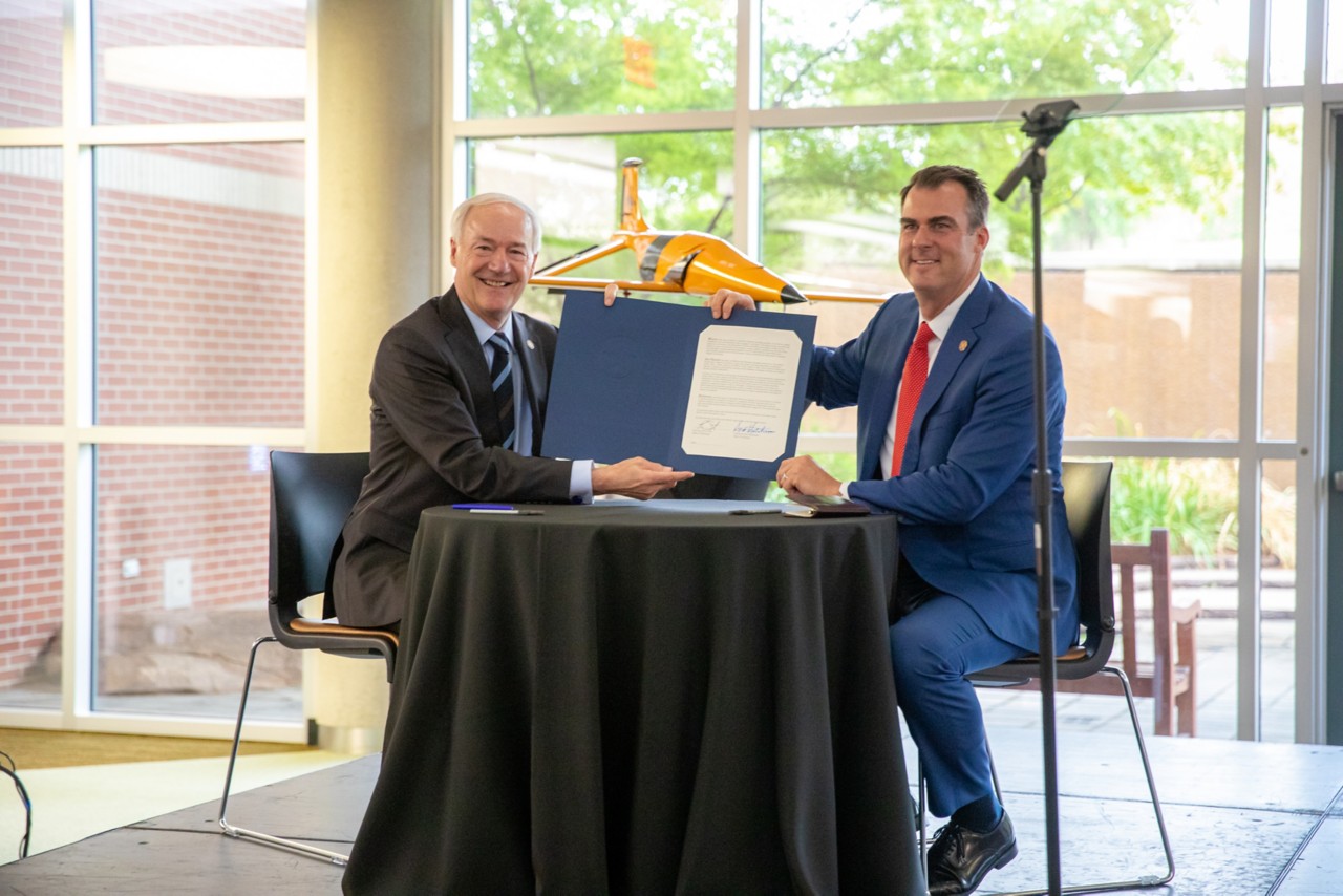 Joining together at the Helmerich Research Center at Oklahoma State University Governors Stitt and Hutchinson signed a Memorandum of Understanding (MOU) to initiate the partnership. Highlights of this joint effort include: