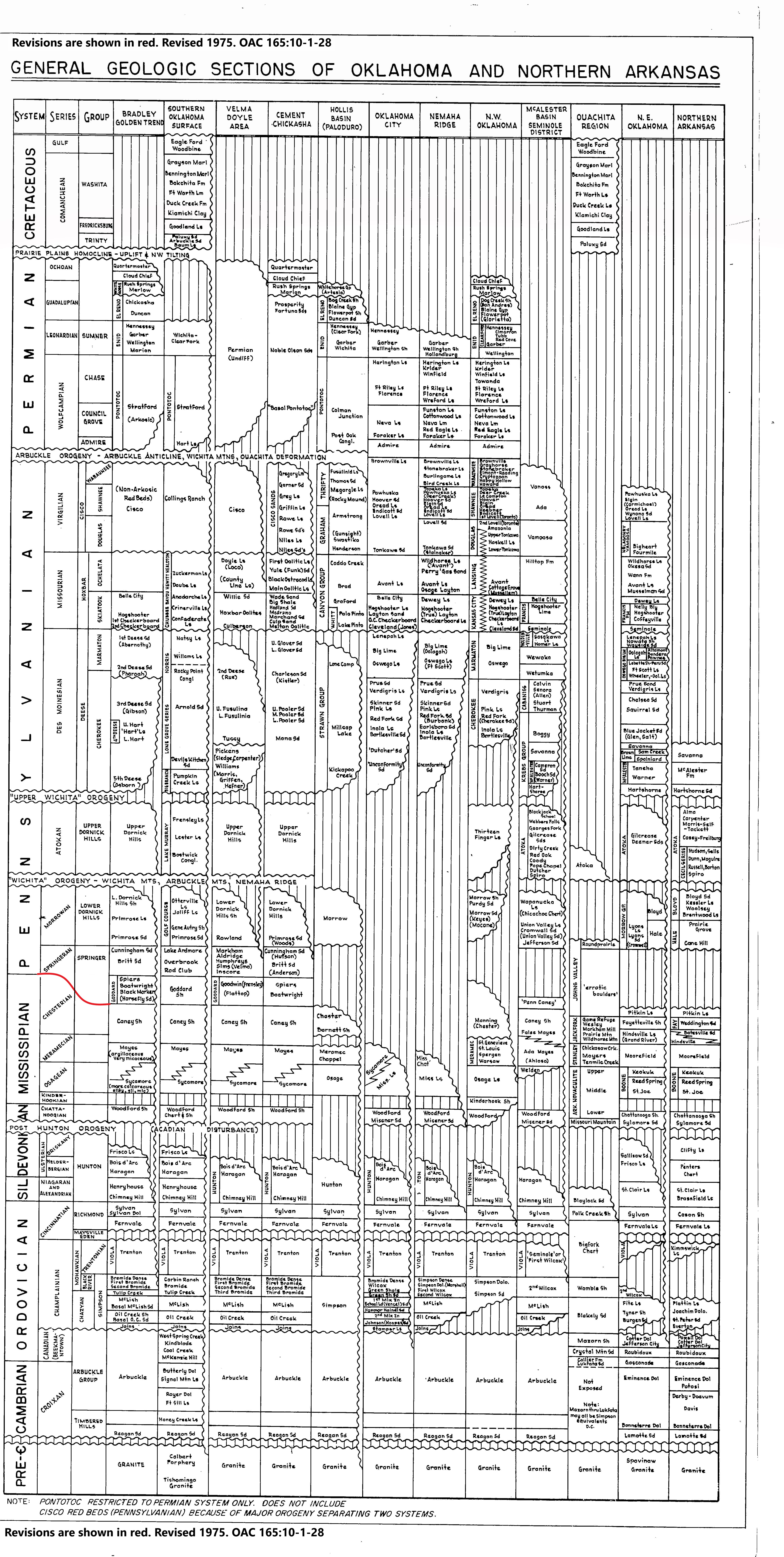 Revisions to the original General Geologic Sections of Oklahoma and Northern Arkansas document will be shown in red.