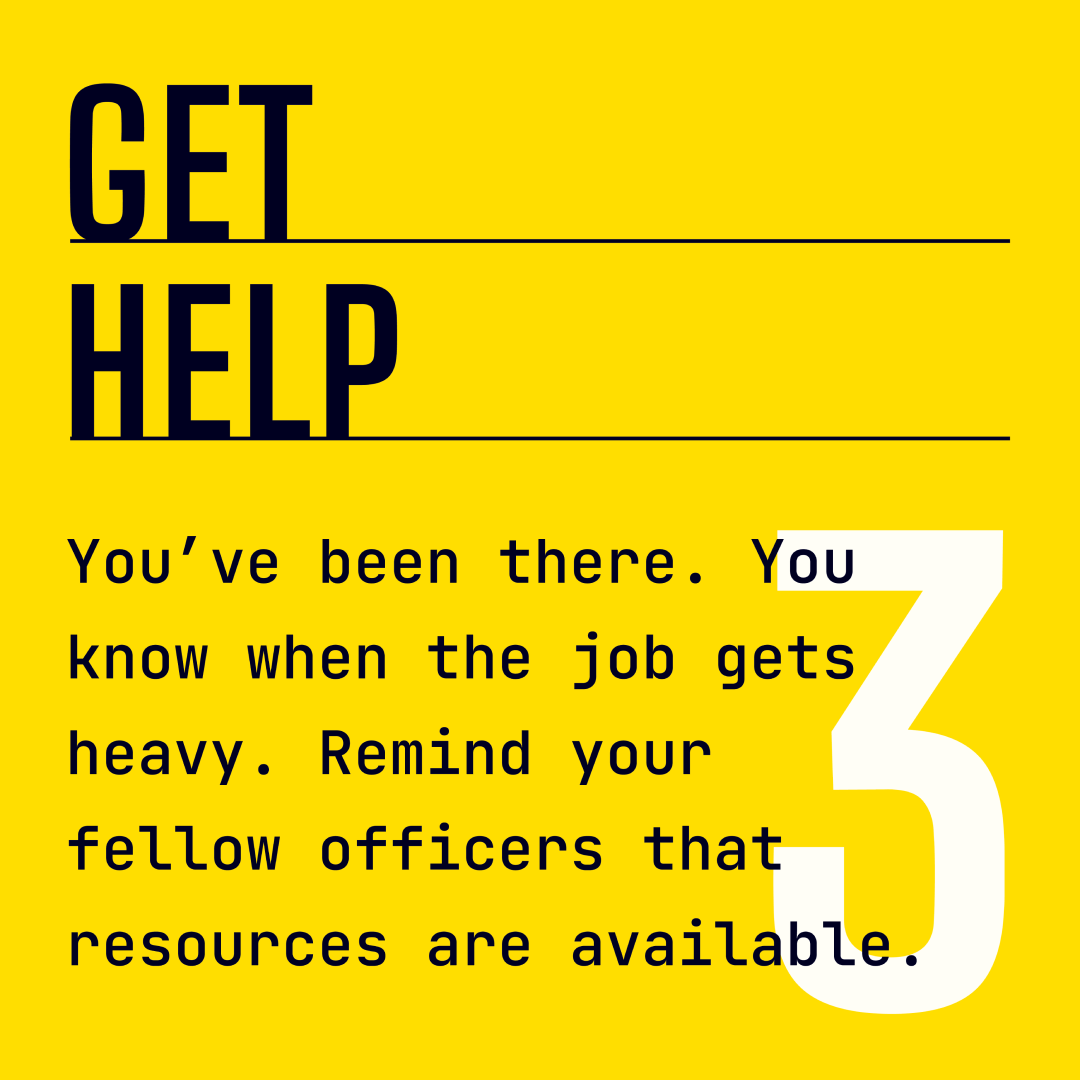 Get help. You’ve been there. You know when the job gets heavy. Remind your fellow officers that resources are available.