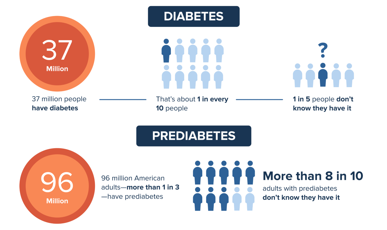 In the United States, 88 million adults—more than 1 in 3—have prediabetes. What’s more, more than 84% of them don’t know they have it. With prediabetes, blood sugar levels are higher than normal, but not high enough yet to be diagnosed as type 2 diabetes. Prediabetes raises your risk for type 2 diabetes, heart disease, and stroke. The good news is if you have prediabetes, a CDC-recognized lifestyle change program can help you take healthy steps to reverse it.