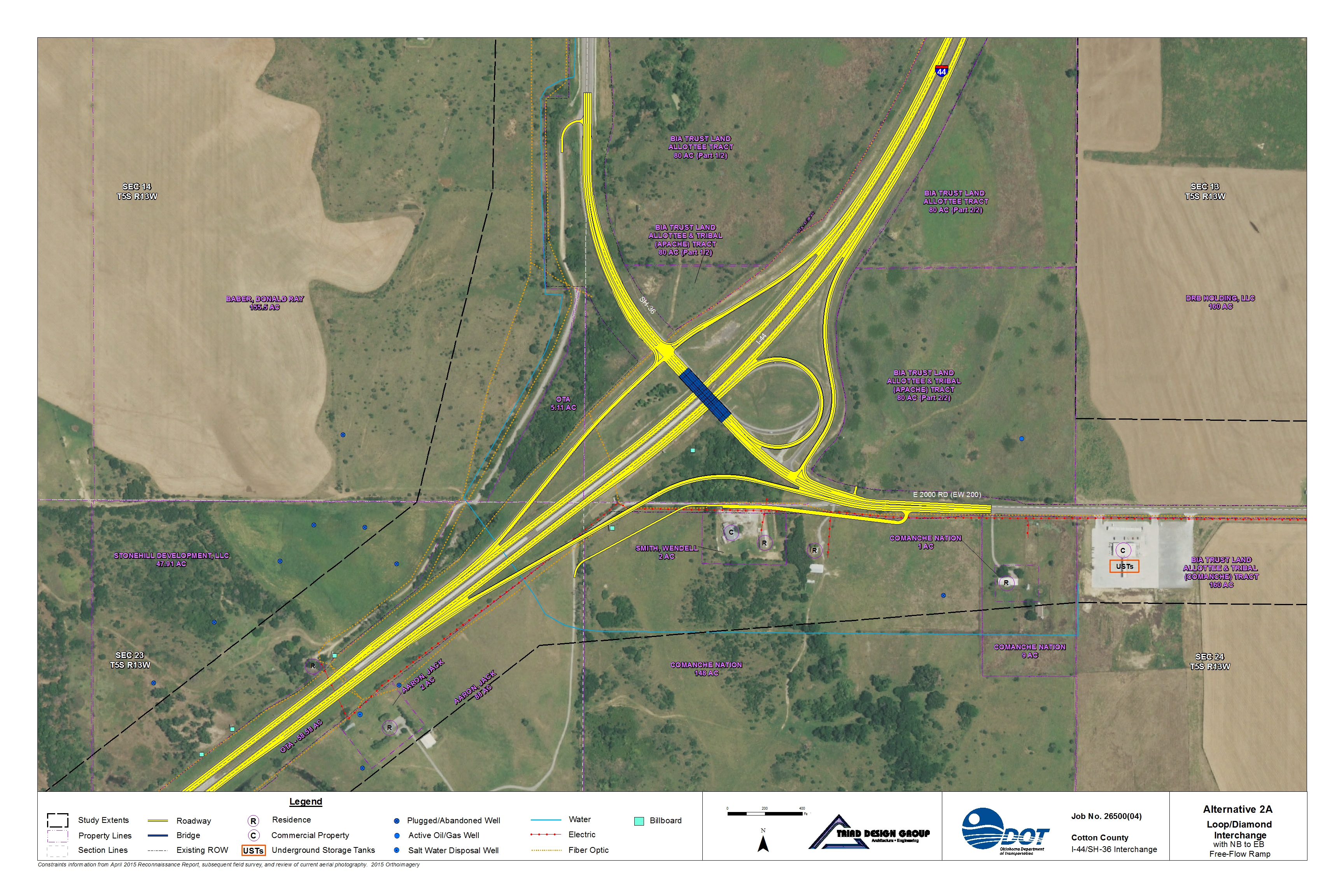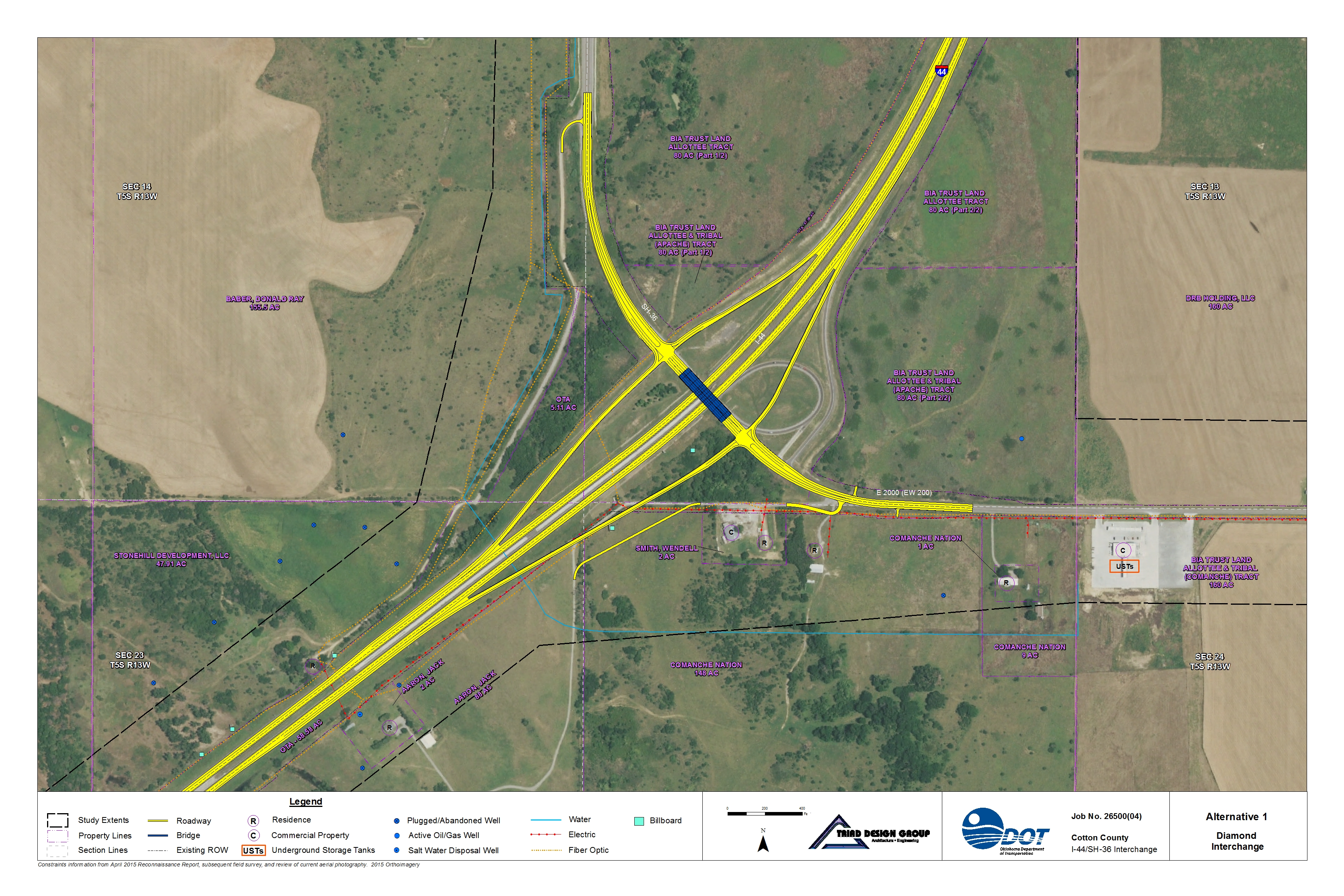 The Oklahoma Department of Transportation (ODOT), in cooperation with the Federal Highway Administration (FHWA), is proposing to improve the I-44/SH-36 interchange and reconstruct I-44 pavement from the Red River Bridge at the Texas State line extending north 1.24 miles through the SH-36 interchange in Cotton County, Oklahoma.