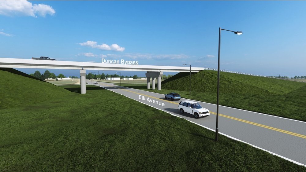 Three alternatives for a grade-separated interchange were evaluated based on traffic considerations, safety, land use considerations, and cost. ODOT proposes to construct an overpass and interchange at Duncan Bypass and Elk Avenue, with Duncan Bypass elevated over Elk Avenue. Constructing an interchange on an offset alignment will offer improvements to accommodate future traffic growth and enhanced safety, and offer a straight roadway between Elk and Beech avenues. The existing Duncan Bypass and Elk Avenue will remain open during construction and access to residences and businesses will be maintained.