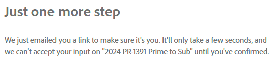 *Primes using this form may encounter the message below. Simply confirm you are you in the email you receive and the form will move on to the next party.