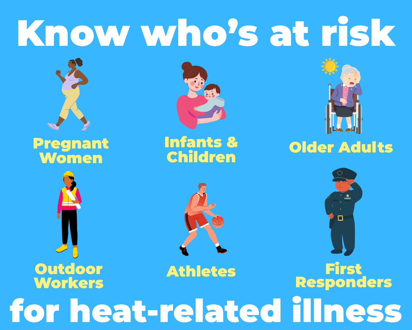 Some are more susceptible to heat illnesses than others. If you don't fall into one of these categories, be sure to keep an eye out for these folks when the heat is intense. They should take extra precautions to stay safe!