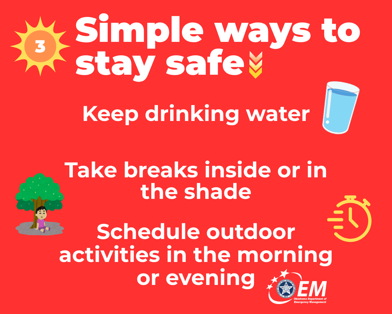 This toolkit was created for the Oklahoma Department of Emergency Management and its partners to promote #HeatSafety throughout the sweltering summer months and equip Oklahomans with the information they need to recognize, prevent and treat heat-related illnesses.