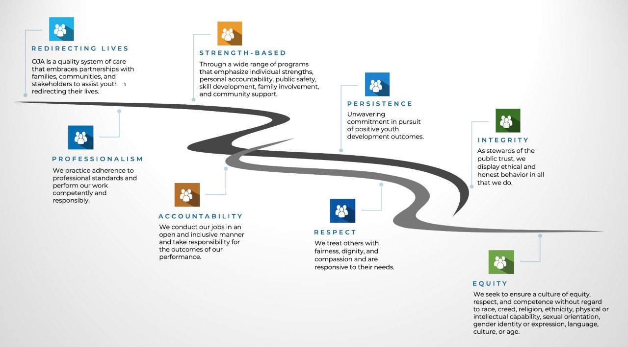 As a youth-serving division, we partner with agency divisions, community resource providers, and other stakeholders to advocate for an individualized and adaptable continuum of community-based services that support Oklahoma’s youth and families in their treatment and rehabilitation by offering quality, inclusive, equitable, evidence-based resources which produce positive, sustainable outcomes.
