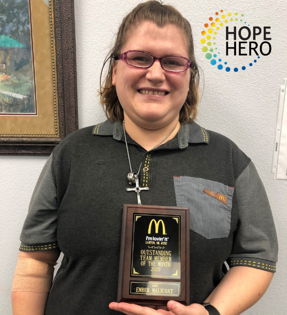 Ember is passionate about baking. She enjoys baking at home and likes to share the cupcakes she makes with friends. While her dream remains to be a baker, she found a fulfilling and enjoyable job at McDonalds. She was even recently recognized as Employee of the Month for her hard work and dedication. Ember’s work ethic is inspirational to others, and her co-workers admire her accomplishments and appreciate her friendship. Her newfound light of hope is burning bright, sparking a path for others to follow.