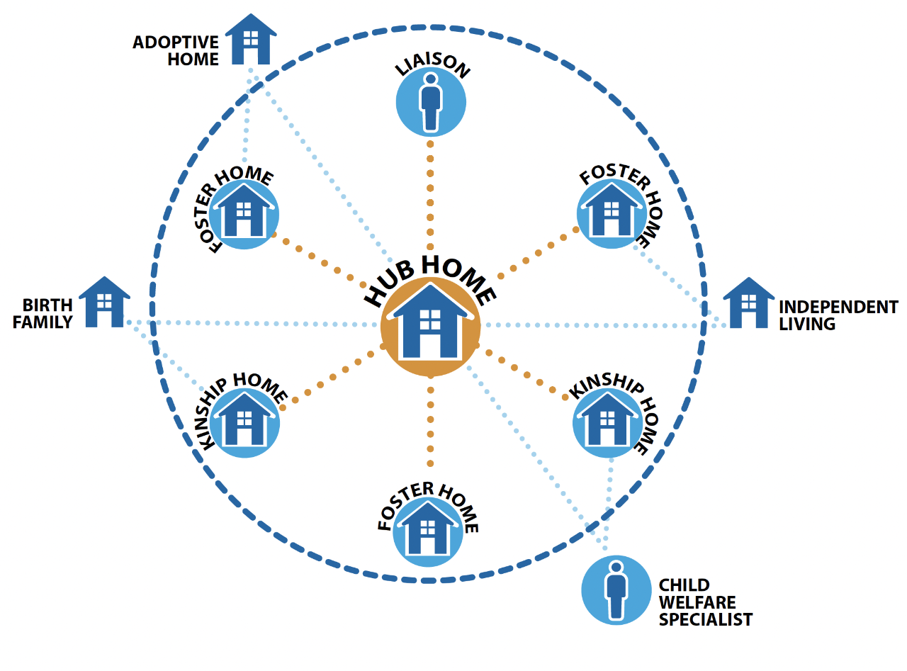 Child Welfare Specialists from Foster Care and Adoptions and Permanency Planning who have families or youth participating in the Constellation will continue to serve in their current role with support from the Mockingbird Liaison and Hub Home.