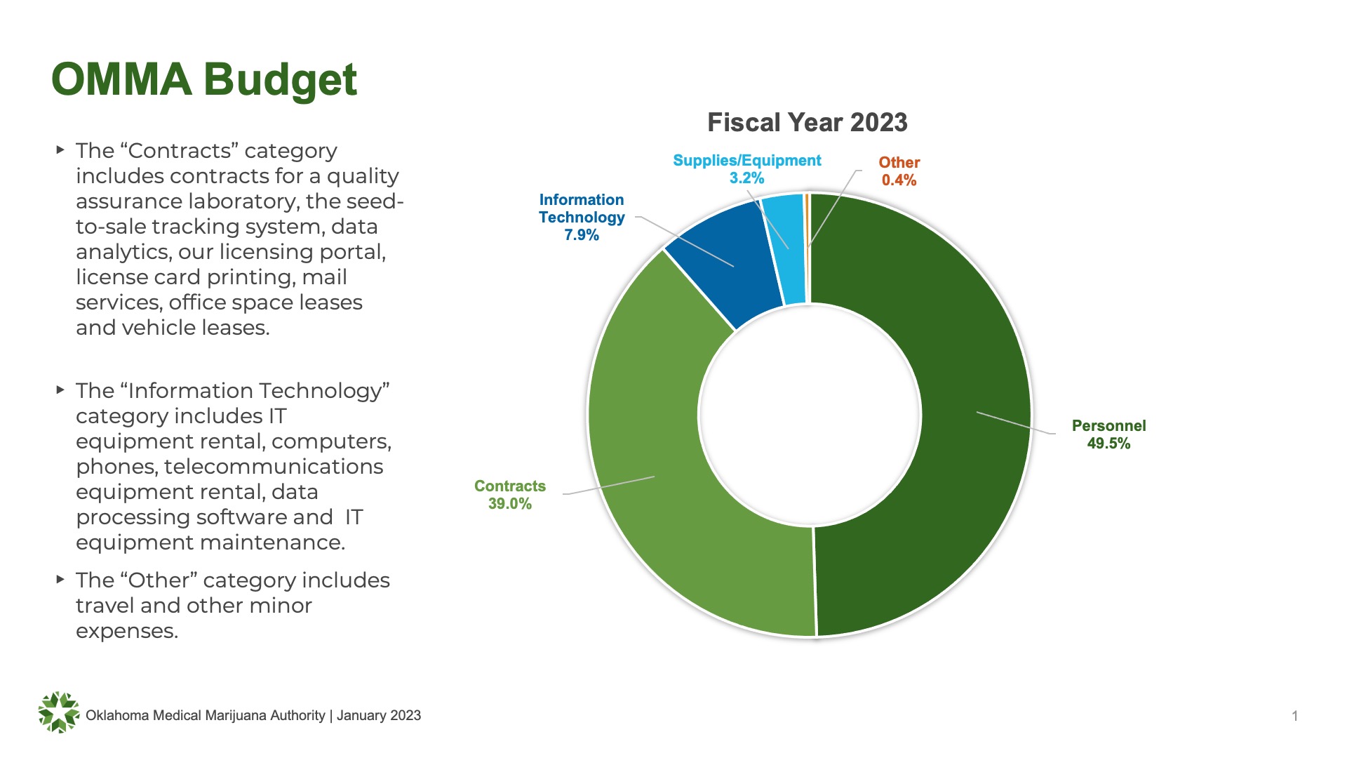 OMMA’s budget includes expenses on personnel, contracts, equipment, supplies and more. Contract expenses include licensing software and services from other state agencies.