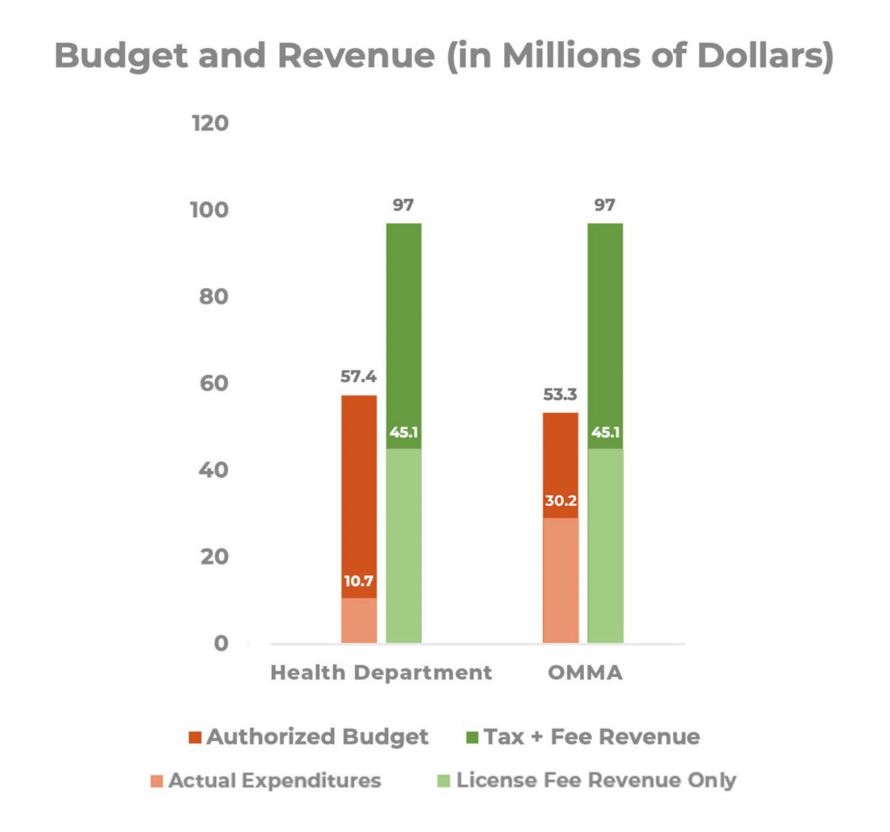 NOTE: As of fiscal year 2024 (July 1, 2023-June 30, 2024), OMMA does not directly receive any revenue. Instead, the Legislature appropriates OMMA's funding annually.