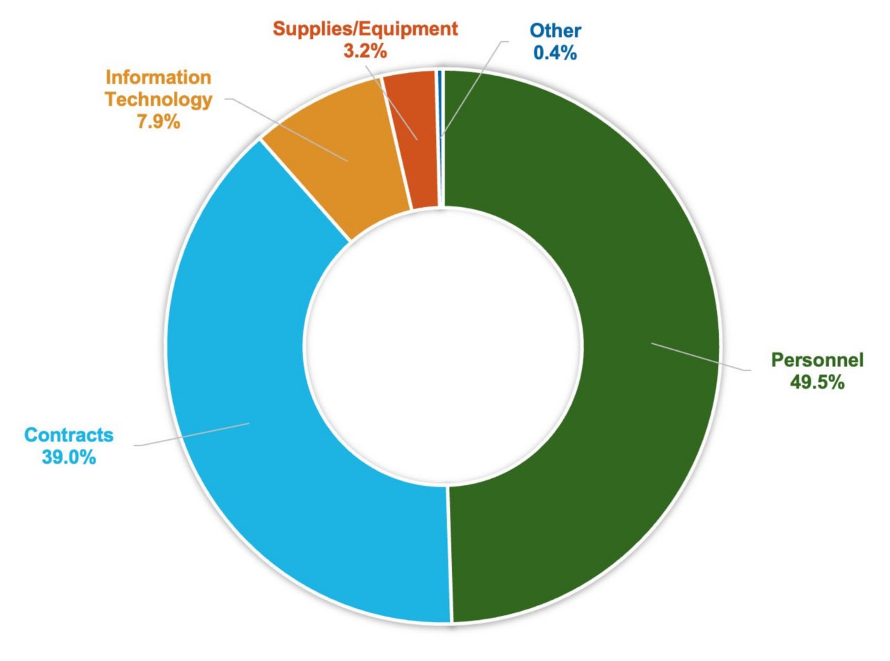 The "Contracts" category includes contracts for a quality assurance laboratory, the seed-to-sale tracking system, data analytics, our licensing portal, license card printing, mail services, office space leases and vehicle leases. The "Information Technology" category includes IT equipment rental, computers, phones, telecommunications equipment rental, data processing software and IT equipment maintenance. The "Other" category includes travel and other minor expenses.