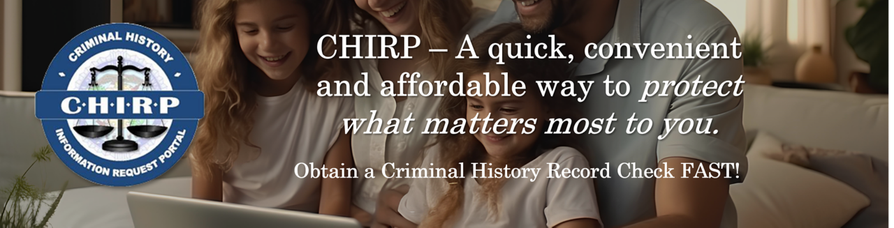 The OSBI's Criminal History Information Request Portal (CHIRP) is an online system that allows you to request a name-based criminal history record check electronically - from anywhere.
