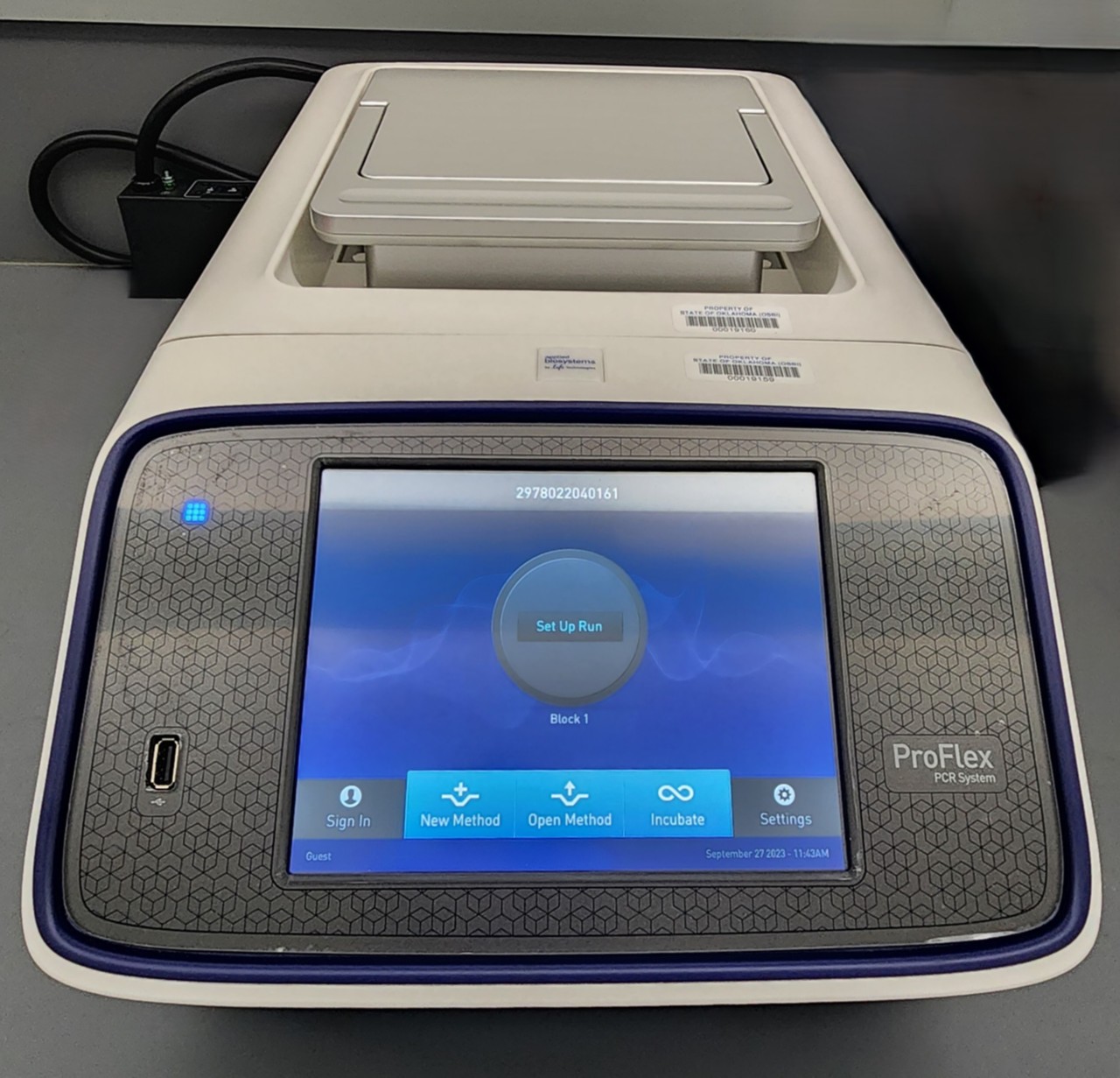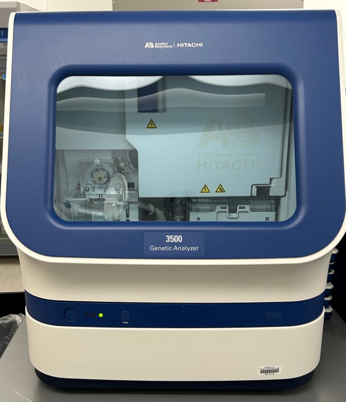 The genetic analysis process analyzes the amplified DNA samples using the Applied Biosystem 3500 Genetic Analyzer. The instrument utilizes capillary electrophoresis and CCD detection using laser excitation to separate and detect the short tandem repeat (STR) alleles in the samples. The data obtained from the genetic analyzer is analyzed with GeneMapper ID-X software.