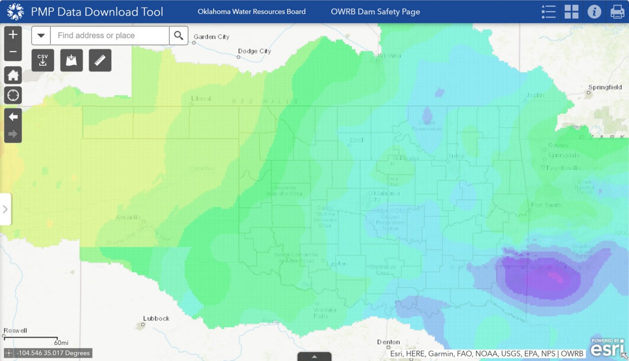 All applications to construct or modify a dam must include spillway design inflow specifications based on the 2019 report Regional Probable Maximum Precipitation Study for Oklahoma, Arkansas, Louisiana, and Mississippi. Gridded PMP values are available in report appendices and regional maps.